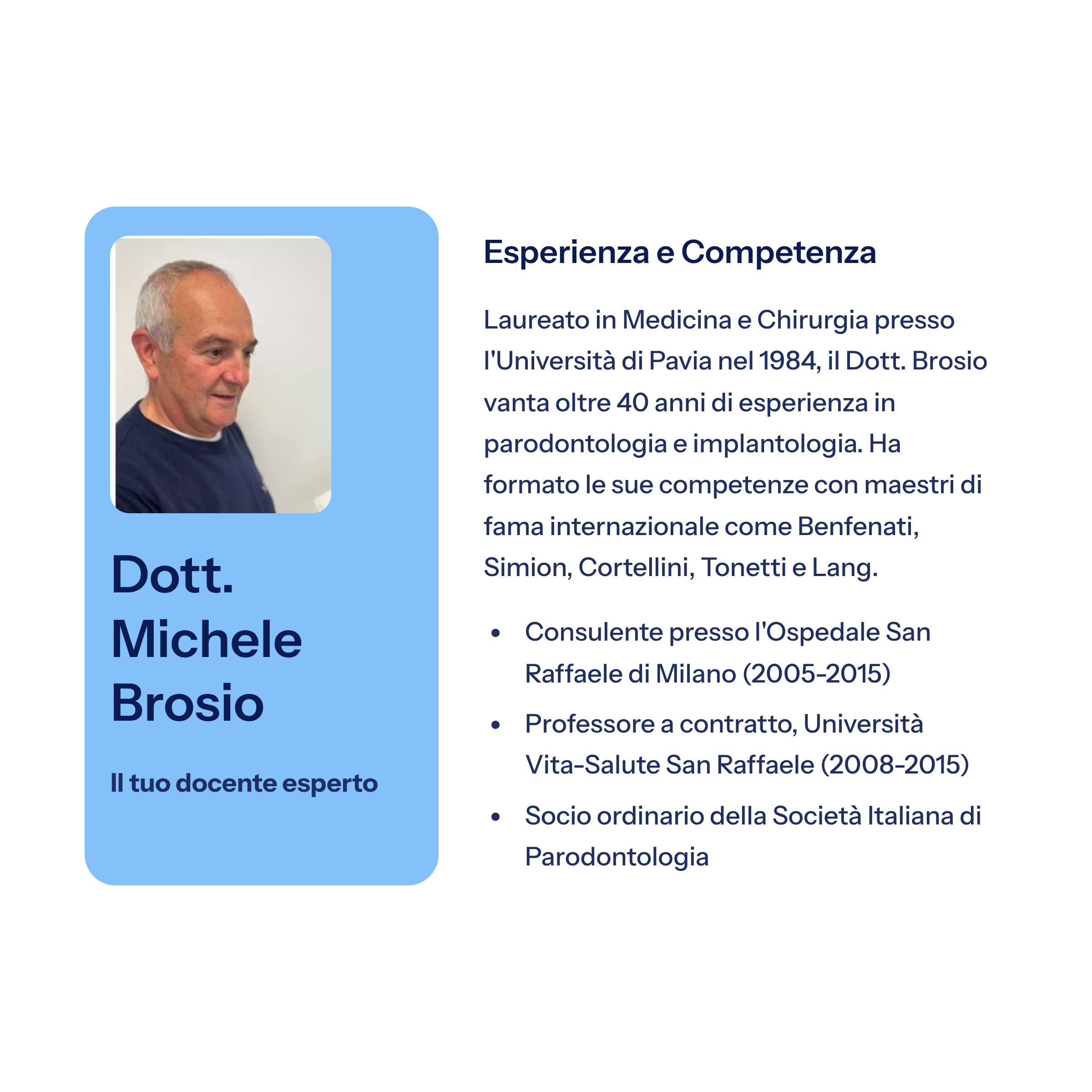 - Apprendere le procedure prima di inserire l’impianto, quelle durante l’inserimento dell’impianto o durante la riapertura e quelle su impianti già protesizzati.
