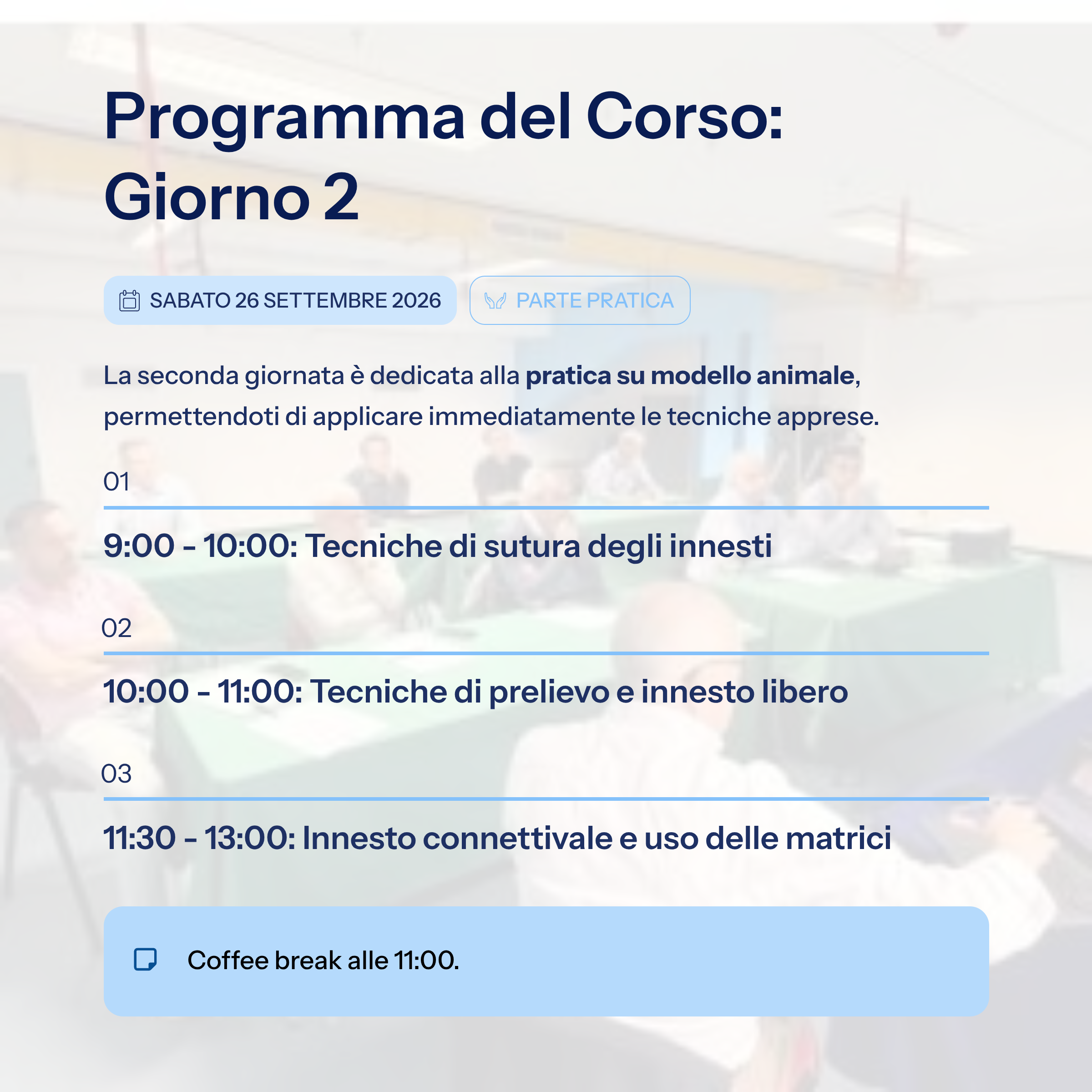 SABATO 26 SETTEMBRE 2026 – Parte pratica su modello animale