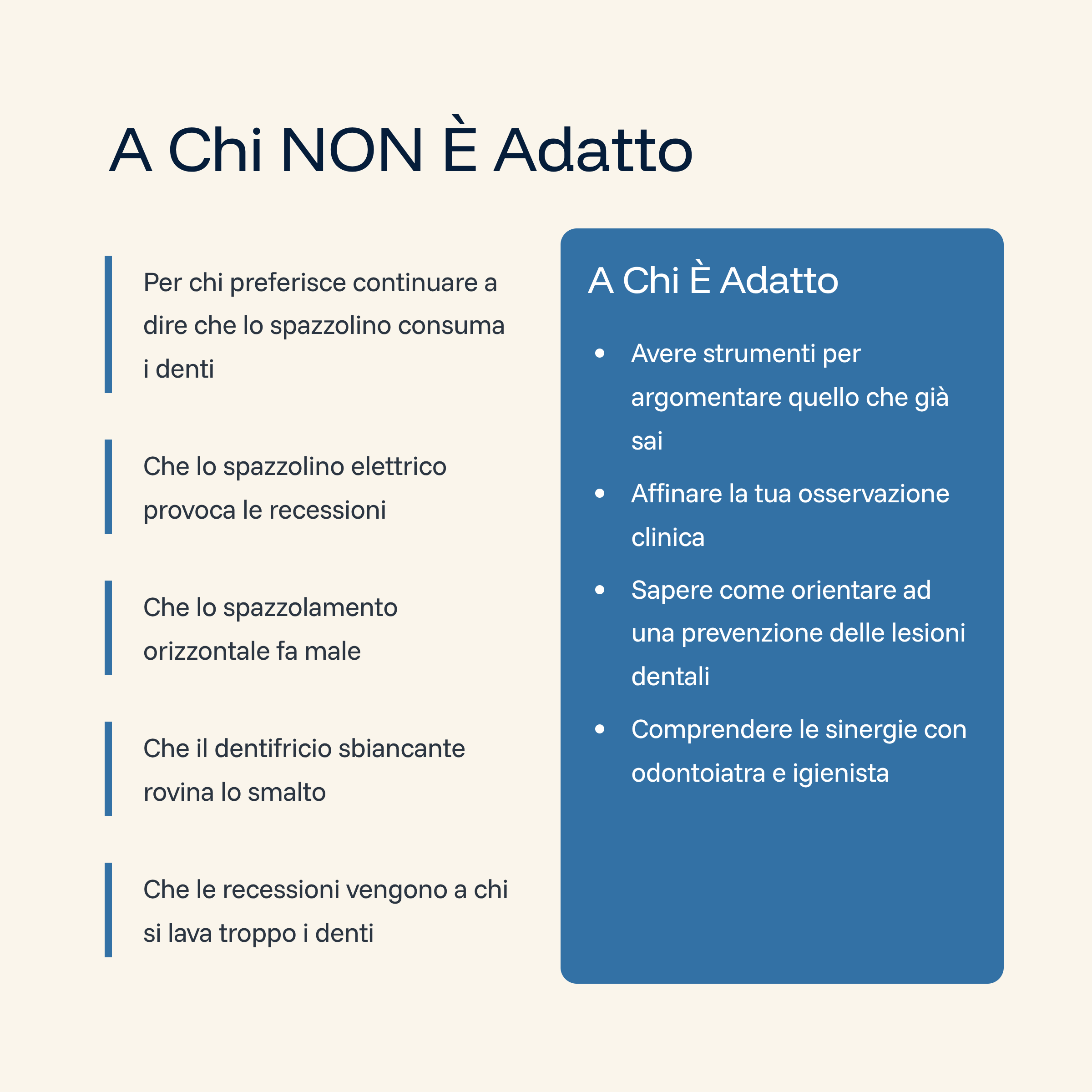 - Quali sinergie con l’odontoiatra e igienista.