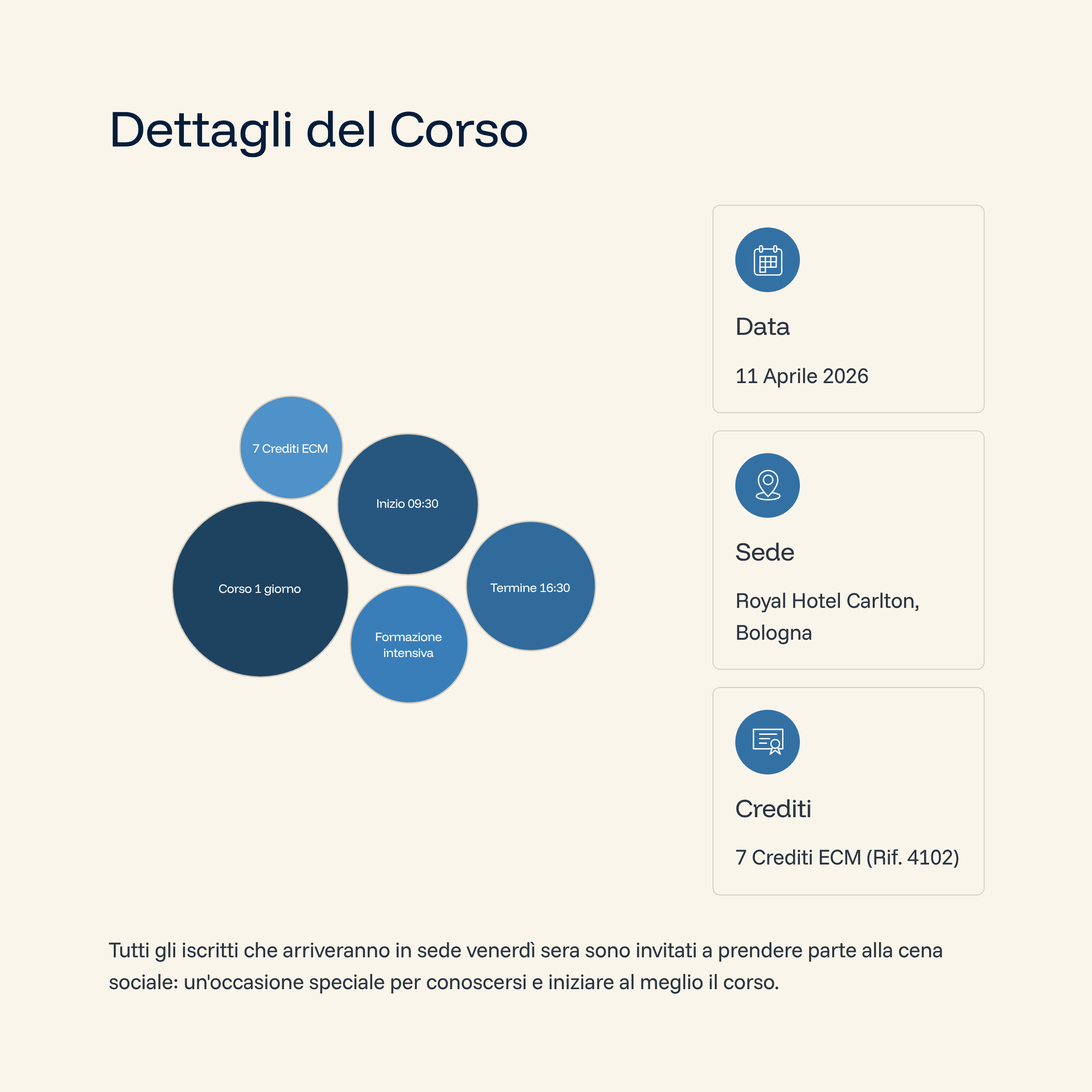 | Per coloro che hanno scelto il pagamento tramite bonifico bancario, si informa che essendo un corso pratico con posti limitati, l’iscrizione sarà considerata valida se seguita entro 5gg. dalla prenotazione, dalla contabile del pagamento. Diversamente, la prenotazione sarà automaticamente cancellata. |
