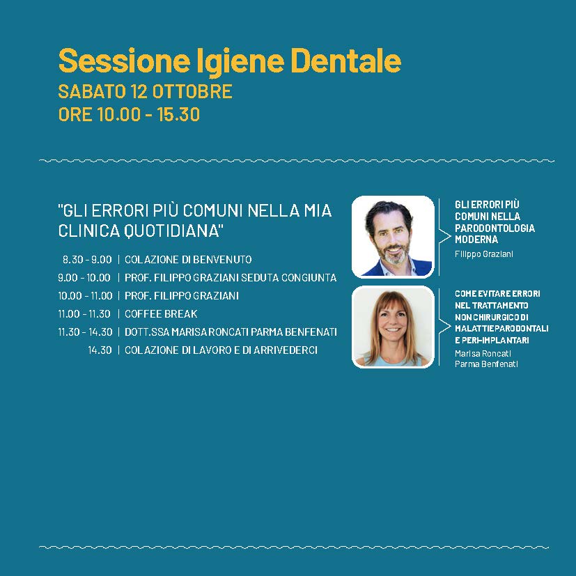 | 9.00 – 10.00 | Prof. Filippo Graziani – GLI ERRORI PIÙ COMUNI NELLA PARODONTOLOGIA MODERNA |