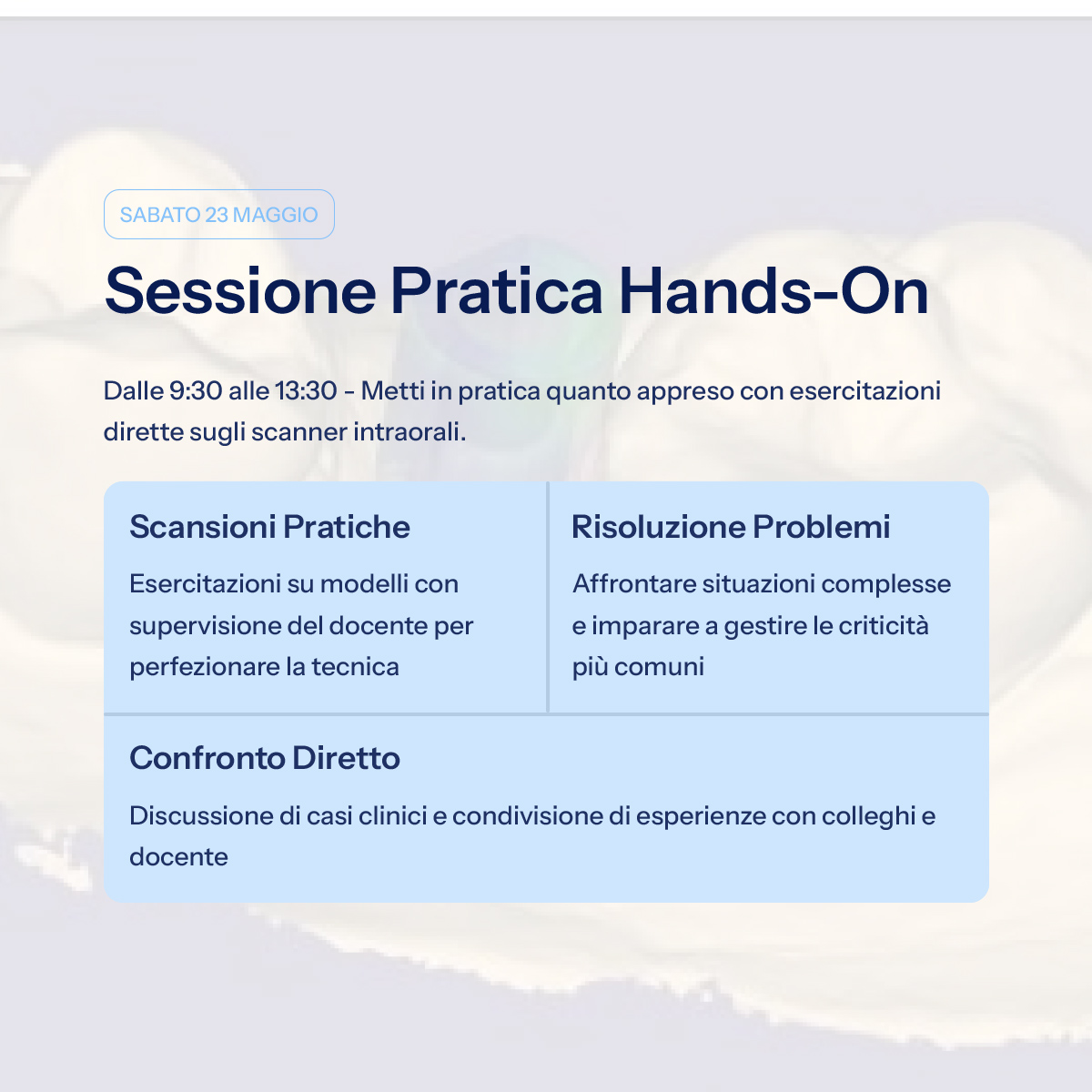 Destinatari del corso: Odontoiari. Aperto agli utilizzatori di qualsiasi tipo o marca di Scanner.