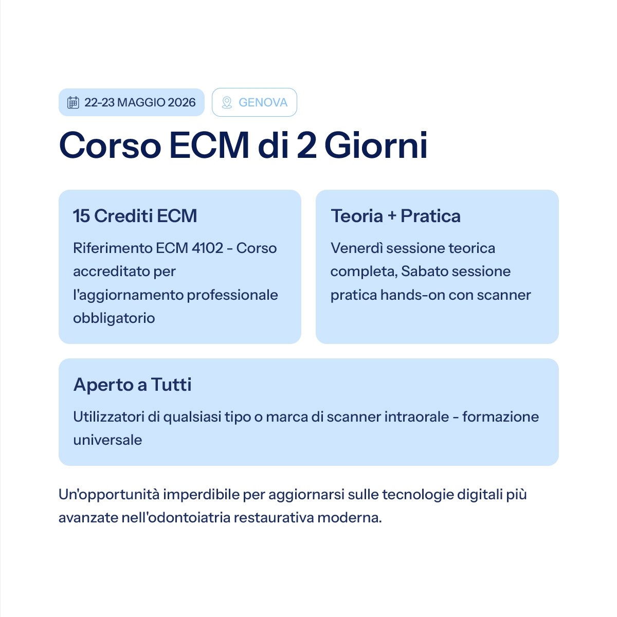 Destinatari del corso: Odontoiari. Aperto agli utilizzatori di qualsiasi tipo o marca di Scanner.