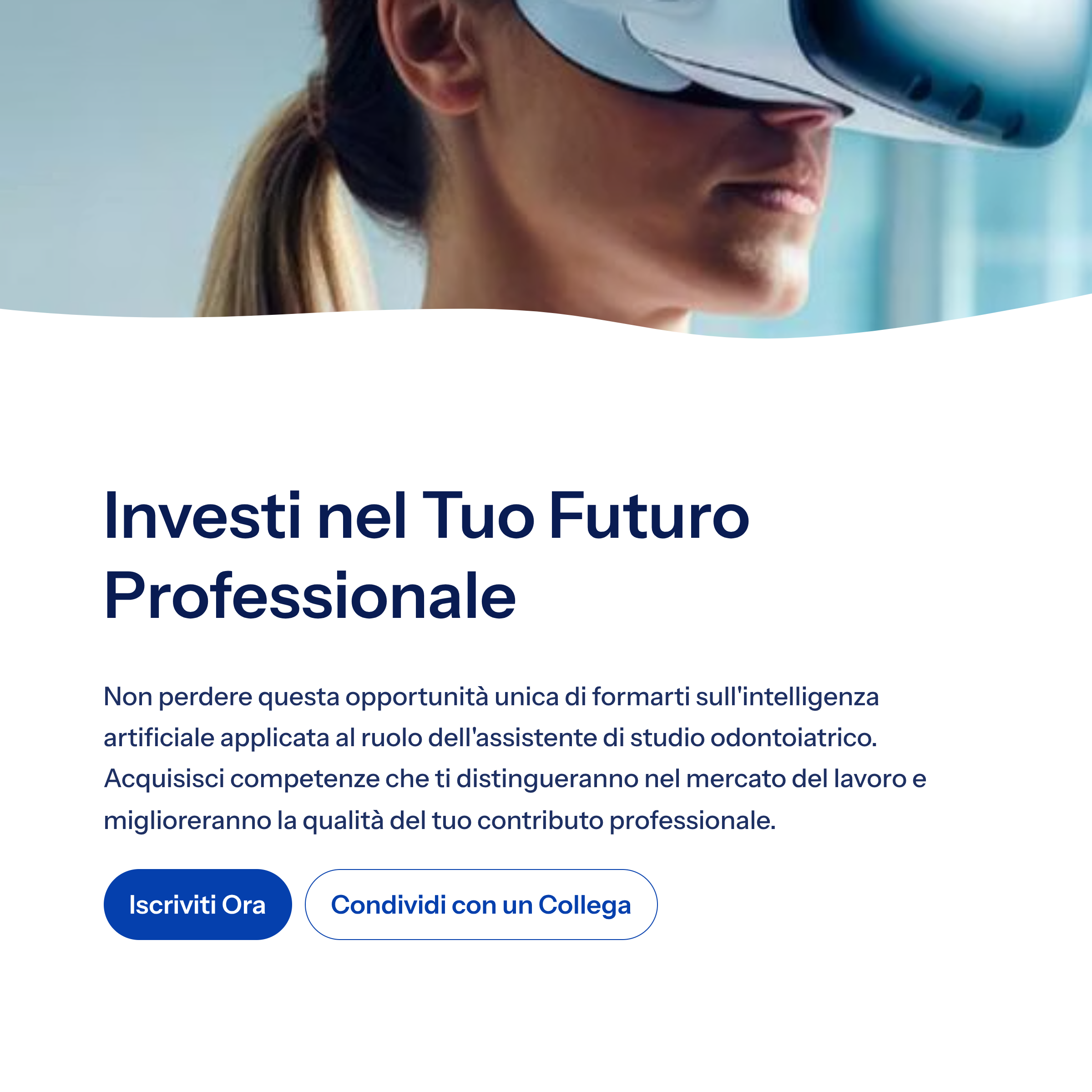 All’interno del team odontoiatrico, l’Assistente di Studio Odontoiatrico (ASO) ricopre un ruolo cruciale e poliedrico, che sta evolvendo di pari passo con l’introduzione di nuove tecnologie. L’adozione dell’Intelligenza Artificiale non deve essere percepita come una minaccia, bensì come una significativa opportunità per gli ASO. L’IA può infatti consentire loro di potenziare le proprie competenze, ridurre il carico di lavoro legato a mansioni ripetitive e amministrative, e contribuire in modo ancora più efficace al successo dello studio e alla qualità dell’esperienza del paziente. L’automazione intelligente di alcune attività può liberare tempo prezioso, permettendo all’ASO di dedicarsi maggiormente all’assistenza clinica e alla relazione con il paziente, aspetti fondamentali del suo ruolo. Questo seminario si propone di demistificare l’IA, fornendo agli ASO le conoscenze e la fiducia necessarie per comprendere e utilizzare questi nuovi strumenti nel loro lavoro quotidiano, in linea con l’importanza della formazione continua e dell’aggiornamento professionale nel settore sanitario. La crescente disponibilità di strumenti AI focalizzati sulla gestione operativa (come software per appuntamenti, comunicazione automatizzata, gestione documentale) rende questa tecnologia immediatamente applicabile e vantaggiosa per le mansioni quotidiane dell’ASO, che includono ampiamente queste aree.
