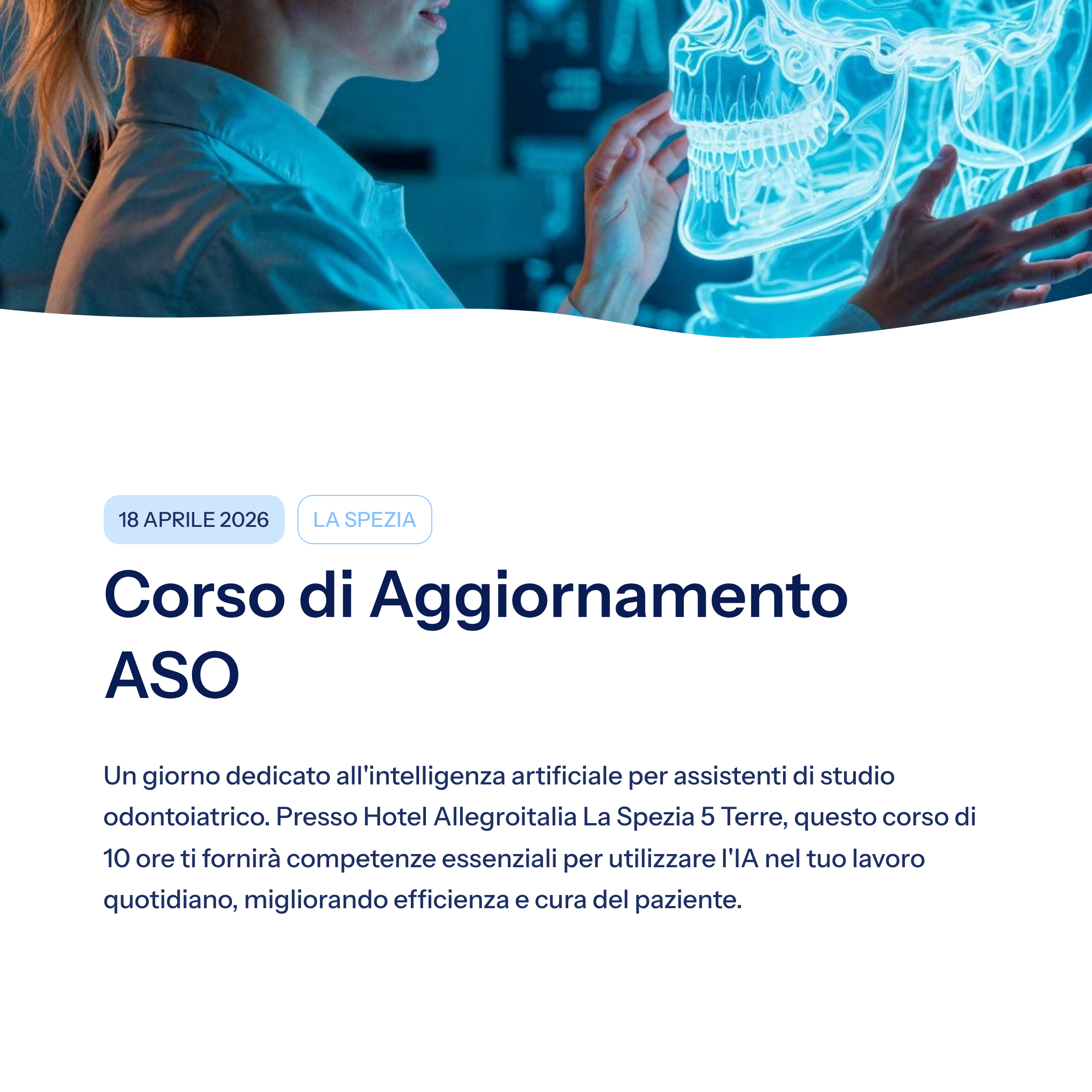 All’interno del team odontoiatrico, l’Assistente di Studio Odontoiatrico (ASO) ricopre un ruolo cruciale e poliedrico, che sta evolvendo di pari passo con l’introduzione di nuove tecnologie. L’adozione dell’Intelligenza Artificiale non deve essere percepita come una minaccia, bensì come una significativa opportunità per gli ASO. L’IA può infatti consentire loro di potenziare le proprie competenze, ridurre il carico di lavoro legato a mansioni ripetitive e amministrative, e contribuire in modo ancora più efficace al successo dello studio e alla qualità dell’esperienza del paziente. L’automazione intelligente di alcune attività può liberare tempo prezioso, permettendo all’ASO di dedicarsi maggiormente all’assistenza clinica e alla relazione con il paziente, aspetti fondamentali del suo ruolo. Questo seminario si propone di demistificare l’IA, fornendo agli ASO le conoscenze e la fiducia necessarie per comprendere e utilizzare questi nuovi strumenti nel loro lavoro quotidiano, in linea con l’importanza della formazione continua e dell’aggiornamento professionale nel settore sanitario. La crescente disponibilità di strumenti AI focalizzati sulla gestione operativa (come software per appuntamenti, comunicazione automatizzata, gestione documentale) rende questa tecnologia immediatamente applicabile e vantaggiosa per le mansioni quotidiane dell’ASO, che includono ampiamente queste aree.